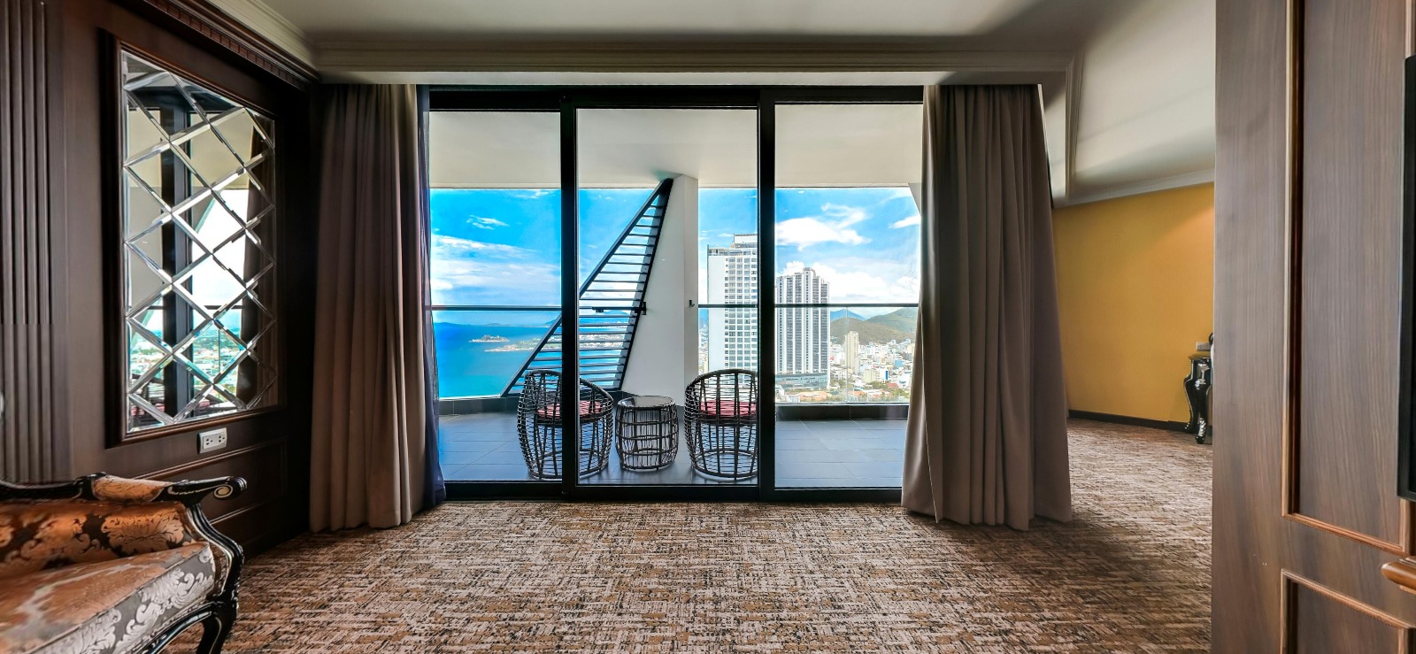 Located on the 26th floor—the highest in the hotel—the Presidential Suite boasts 310m² of living space and 360-degree views of Nha Trang Bay, the city, and Co Tien Mountain. Designed for world leaders, elites, and those seeking absolute exclusivity.