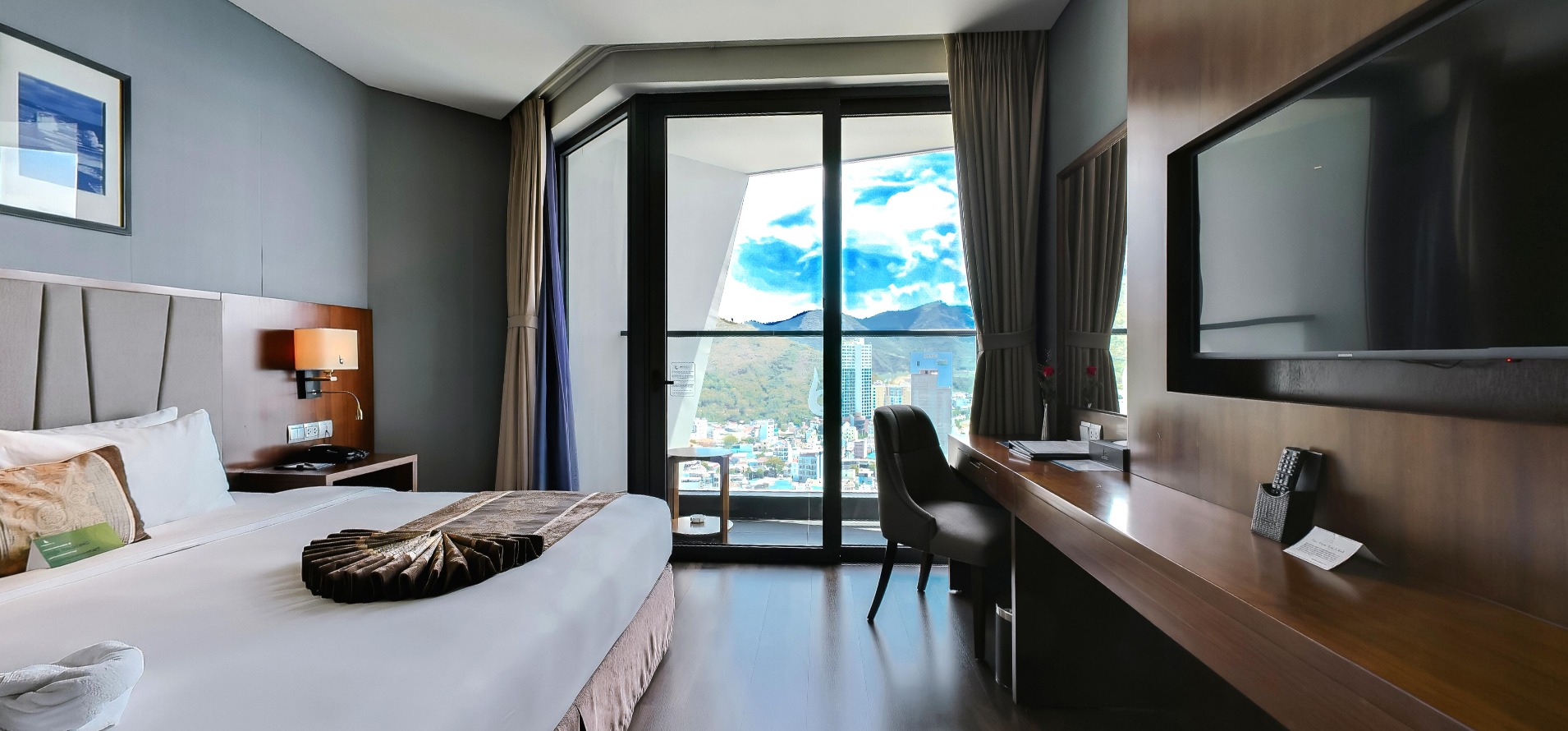 Superior Double Room With Partial Ocean View offers a private balcony with views of Co Tien Mountain and Nha Trang Bay. Enjoy the romantic sea view and refreshing breeze each day. Ideal for morning coffee on the balcony or watching the sunset after a day of exploration.